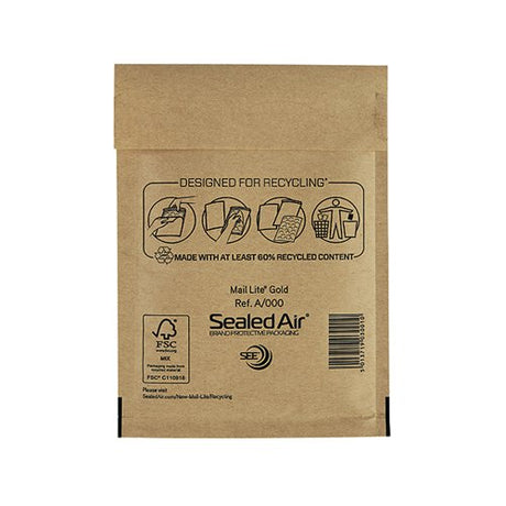 MAIL LITE BUBBLE POSTAL BAG GOLD A000-110X160 (PACK OF 100)